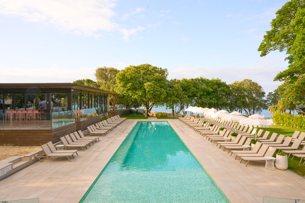 Amenities for hoomans: The Nici Bournemouth offers a 30m heated outdoor pool, a 18m heated indoor pool, luxury spa, hydrotherapy pool, sauna, fire pits, a private cinema, kids' club, tropical gardens, two restaurants, and sea-view suites—all with a chic, Miami-inspired vibe.